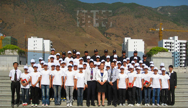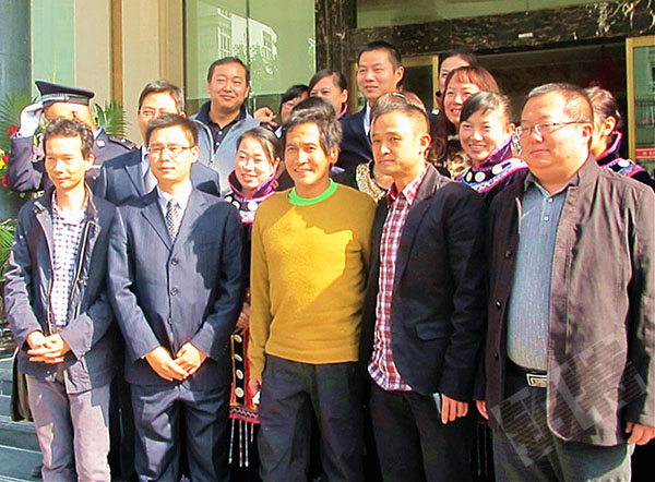与酒店员工合影